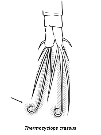 (the longest) is strongly curved ventrally at the tip. Inner and outer spine on the