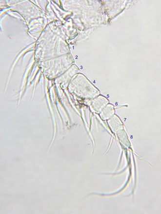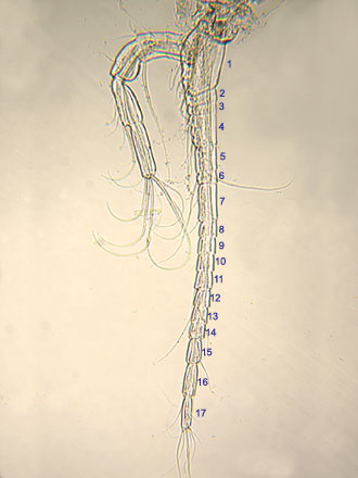 Large species (>1.6 mm); antennule of 17 segments.