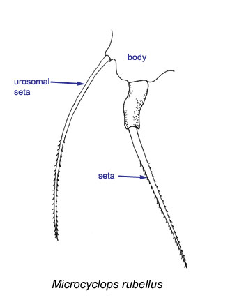 Leg 5 with single terminal seta; first urosomal segment (body) with 1 stout seta protruding laterally on each side.