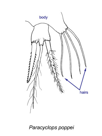 Leg 5 with 3 spines or setae; first urosomal segment (body) with hairs.